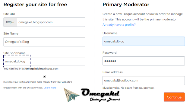 Sau khi nhập xong bấm Continue. Nhớ chú ý phần Site Shortname, nếu phần sau có sự cố thì ta sẽ cần dùng đến nó.